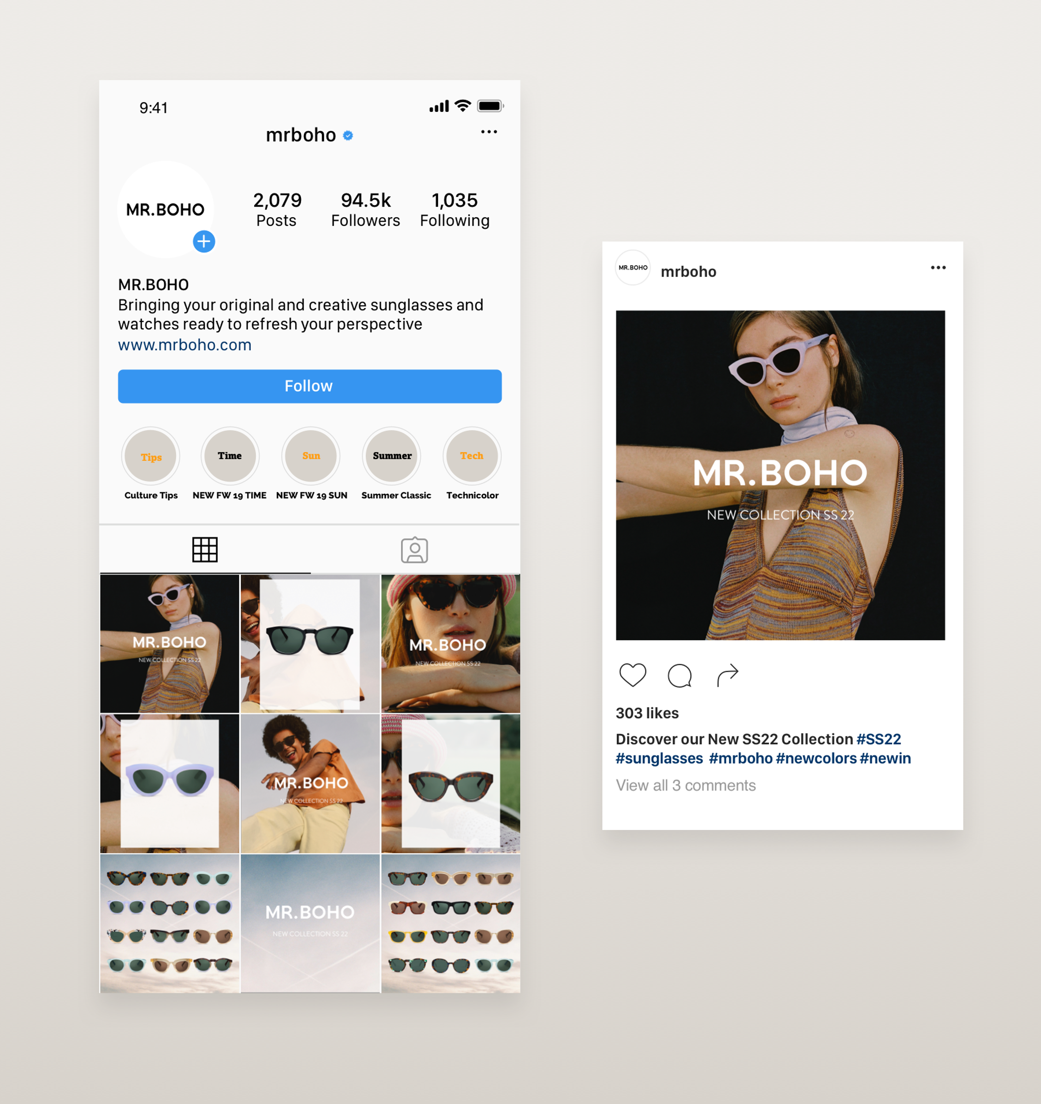 Creative proposal developed for MR.BOHO for the launch of their new collection, including online visuals for Instagram and the rebranding of the newsletter.